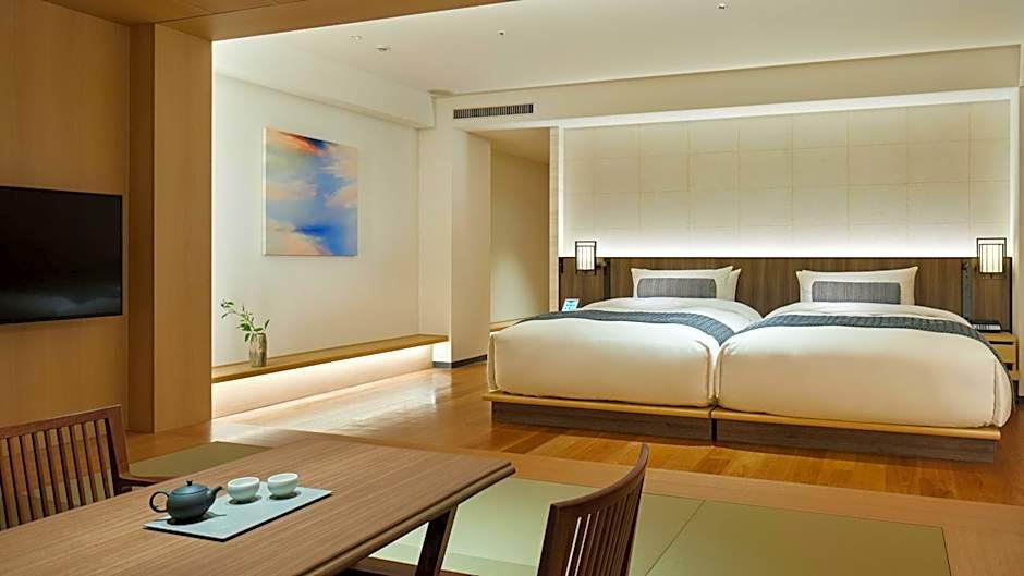 Featuring 1 bedroom, this spacious suite offers 1 bathroom with a bath, a seating area and terrace where you can relax. The air-conditioned suite provides a flat-screen TV with streaming services, tatami, a minibar, a tea and coffee maker as well as garden views. The unit has 2 beds.